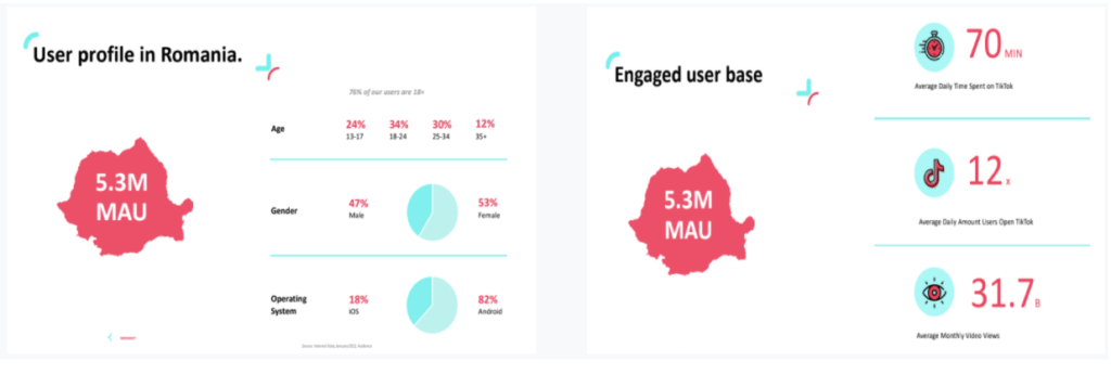 În România, statisticile ne prezintă că peste 76% persoanelor ce utilizează activ TikTok au peste 18 ani și petrec în medie o oră pe zi pe această platformă.