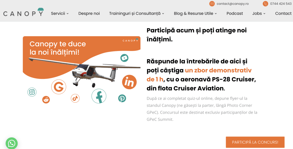 La Canopy, cel mai des rulăm concursuri cu premii pentru a colecta datele de contact ale participanților. Aceasta e o metodă eficientă de lead generation.