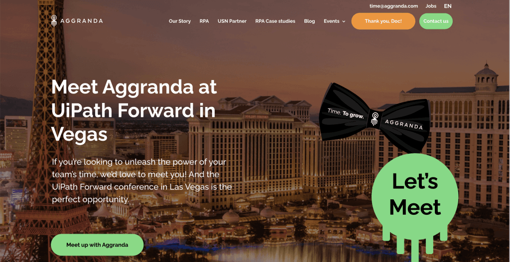 Pentru un eveniment în Las Vegas, am cumpărat o reclamă pe un ecran digital imens. Colegii de la Canopy au promovat-o și online, targetând participanții evenimentului. Rezultat? Aggranda a fost percepută ca un brand premium.