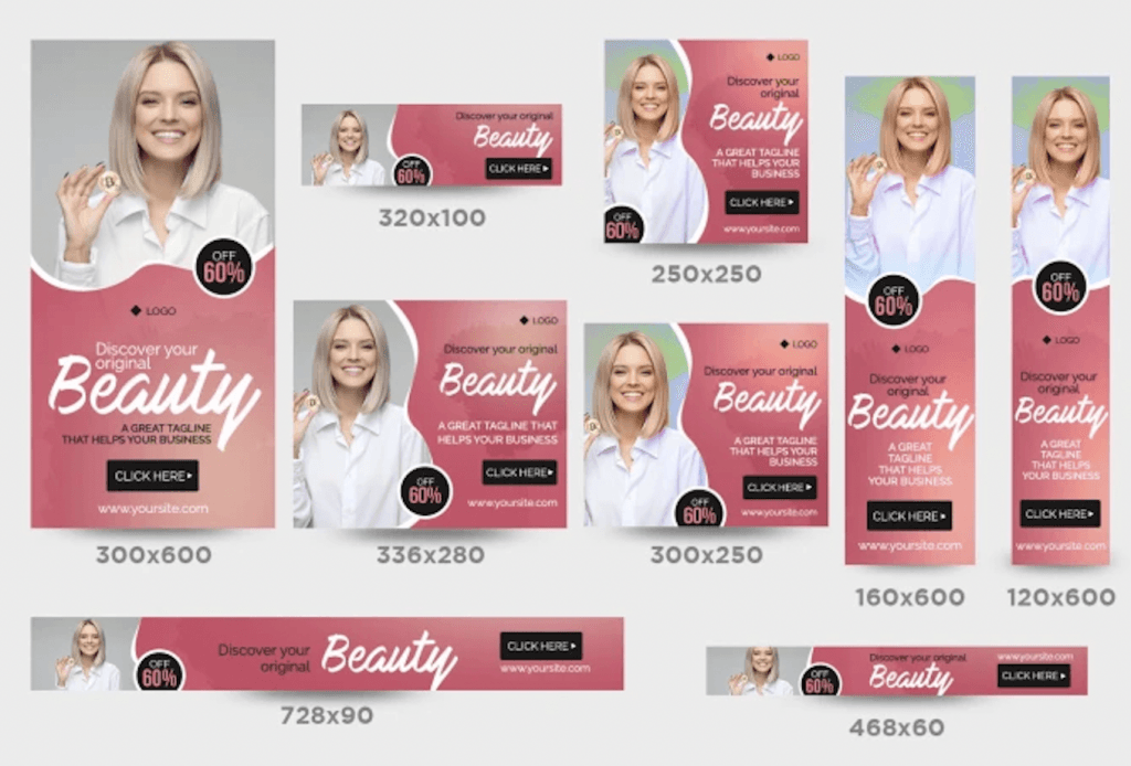 În situația în care publicul tău țintă este preponderent format din Generația Z, atunci poate te-ar interesa diverse variații, precum cele din imaginea de mai jos, de bannere potrivite pentru dispozitivele mobile, fără să le excluzi pe cele responsive.