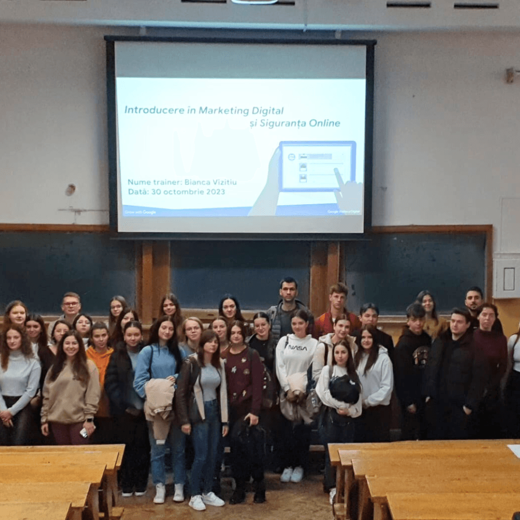 Despre Marketing Digital și Securitate Online le-a vorbit Bianca Vizitiu, PPC Specialist, studenților de la Facultatea de Economie și Administrarea Afacerilor din Iași. Peste 150 de studenți la început de drum au participat la acest curs, entuziaști și dornici să afle mai multe despre online.