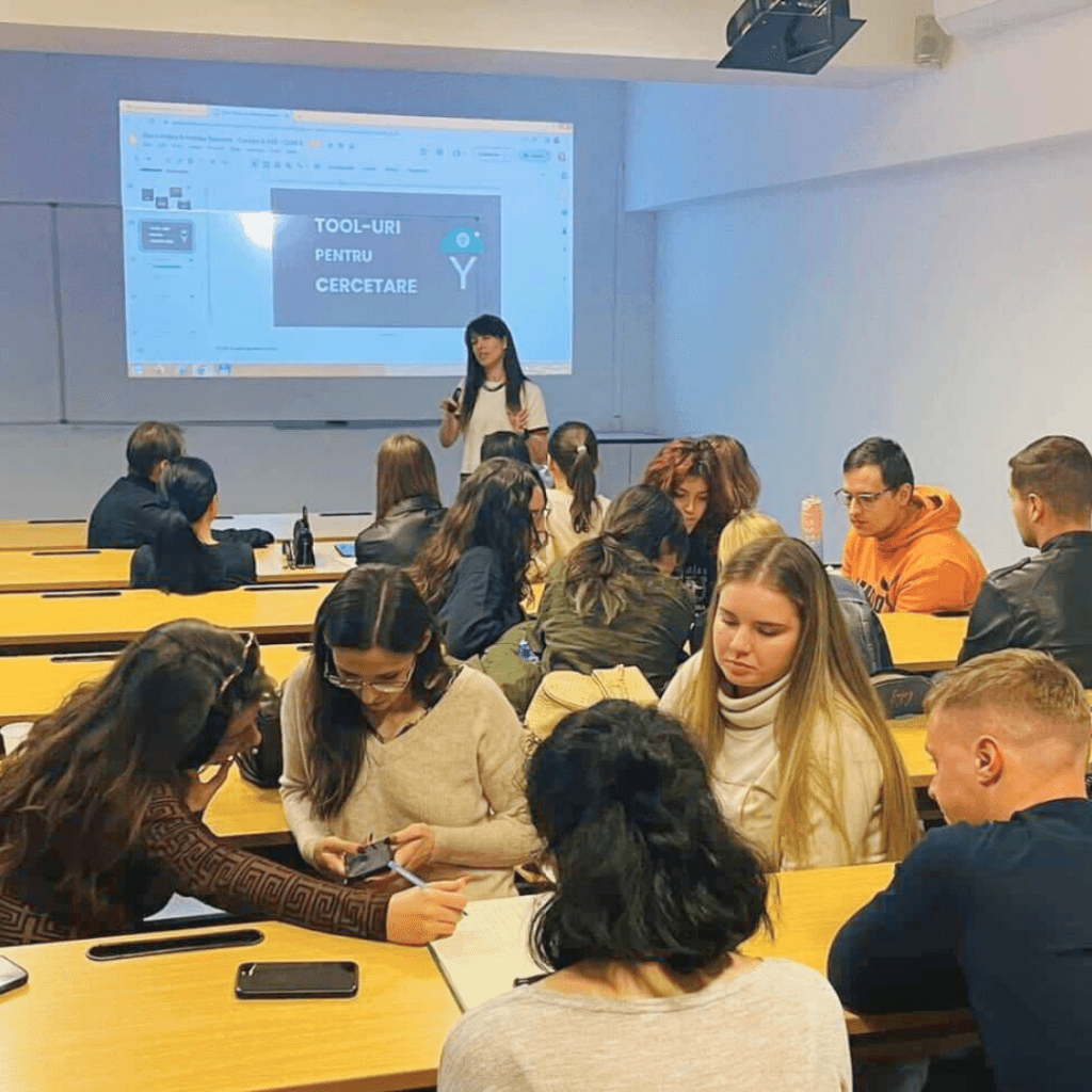 Tot colega noastră, Bianca, a fost prezenta ca trainer și la Atelierul Digital by Google, pentru studenții de anul 3 de la specializarea Economie și Afaceri Internaționale din cadrul FEAA Iași.