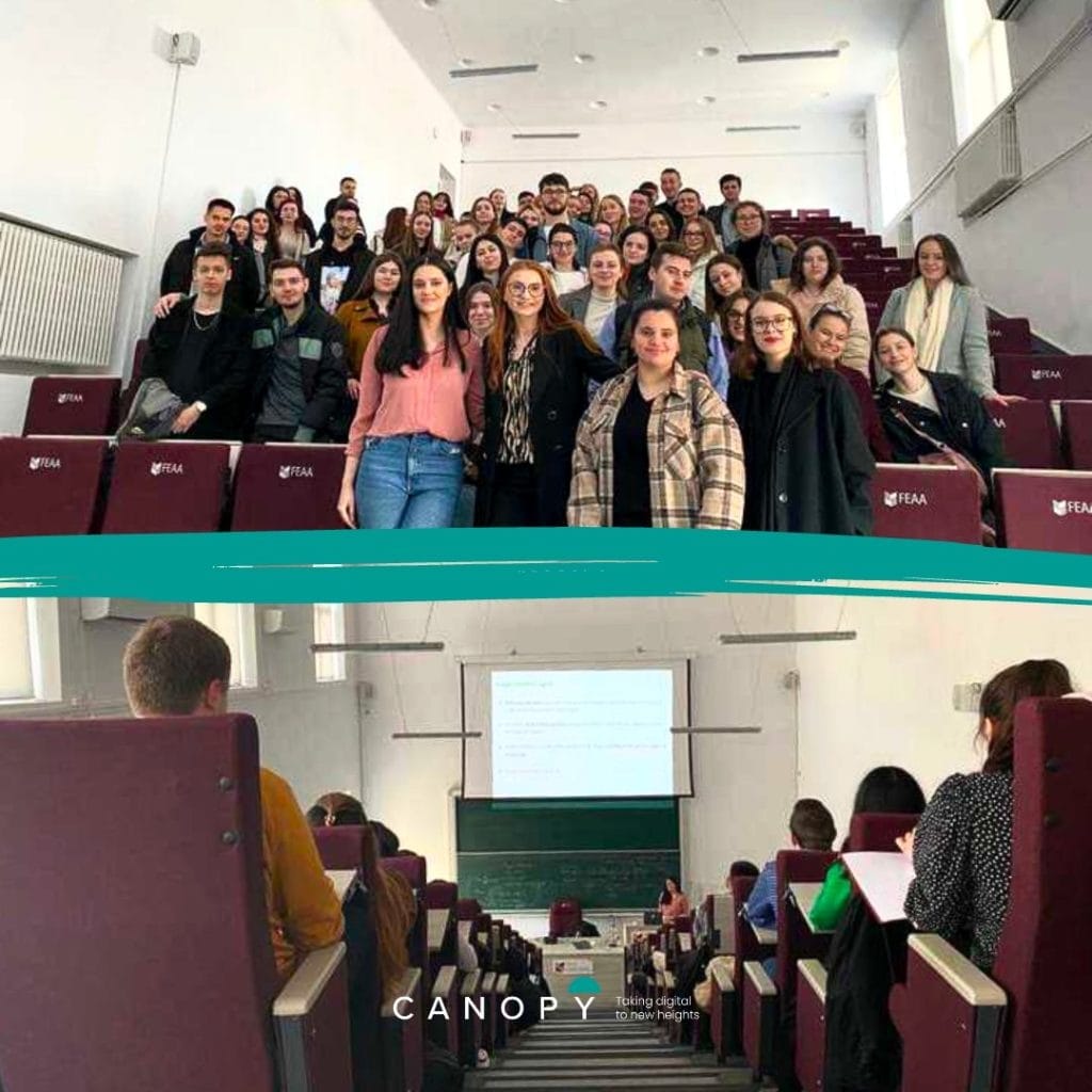 Și în 2023, am investit timp și resurse în dezvoltarea oamenilor din jurul nostru. Am continuat parteneriatul dintre A.S.E. și Canopy pe care îl avem de 10 ani deja, și prin care predăm studenților din cadrul facultății ori de câte ori avem ocazia. Am predat și în alte facultăți din București, Iași, Cluj și venim oricând suntem invitați să vorbim despre marketing online.