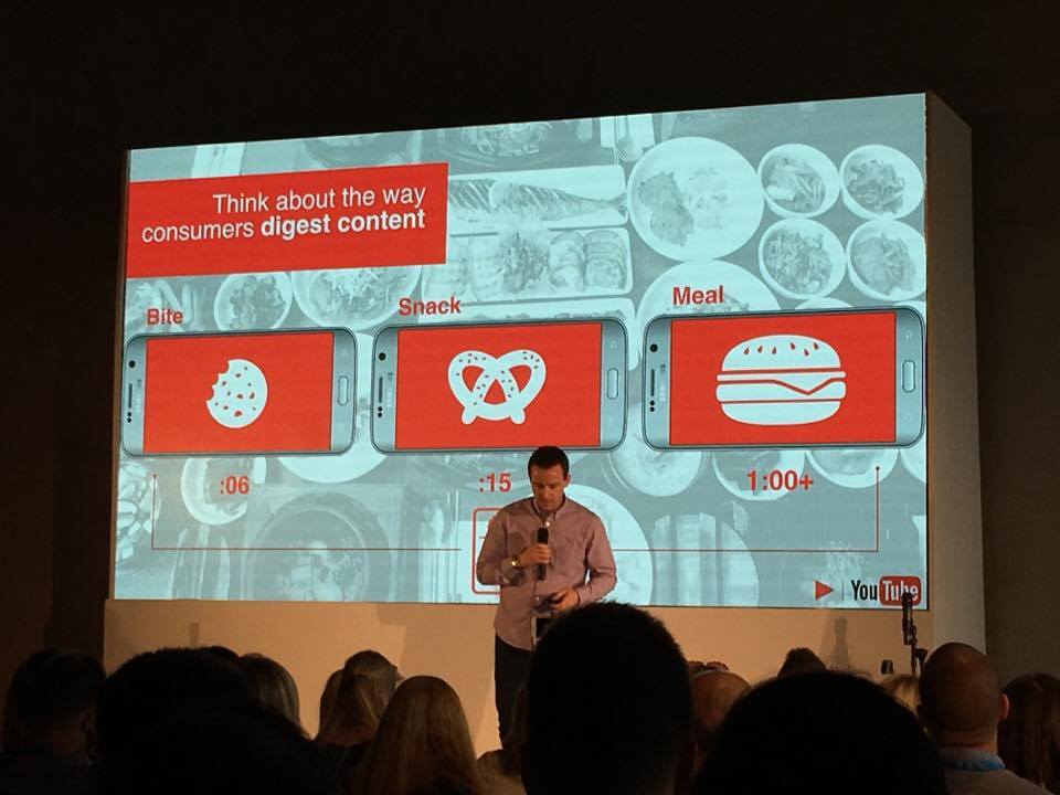 • Bumper Ads e doar o mușcătură dintr-un fursec. Bucățica pe care o guști în cele 6 secunde trebuie să fie absolut delicioasă, să te determeni să îți dorești tot fursecul, să înțelegi ce conține. • Reserve Ads poate fi văzut ca un snack, un pretzel. Ai 15 secunde să îl devorezi. Dacă acel covrig nu are nici un gust (content) care să te facă să te întorci la același magazin să îl cumperi, atunci mai bine nu îl mănânci pe tot, nu? • TrueView Ads este masa ta principală. Prima mușcătură trebuie să te atragă, a doua să te captiveze și la final să îți pară rău că s-a terminat și să vrei mai mult.