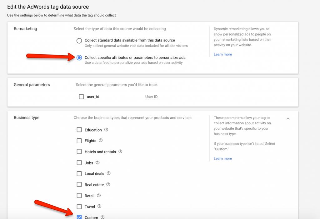 1. Cum implementezi corect codul de remarketing dinamic în site