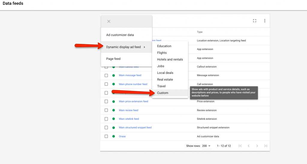 Feed-ul conține informații despre produsele site-ului, precum descriere, foto, preț și url și e necesar să fie construit corect, toate datele urmând să fie utilizate ulterior în anunțuri personalizate. Platforma Google Ads vine și cu o serie de template-uri de feed-uri, în funcție de categoria afacerii, de la turism și retail la real estate.
