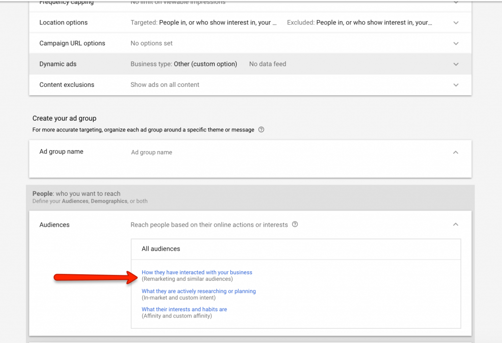În secțiunea Audiences, selectează Remarketing și alege o listă.