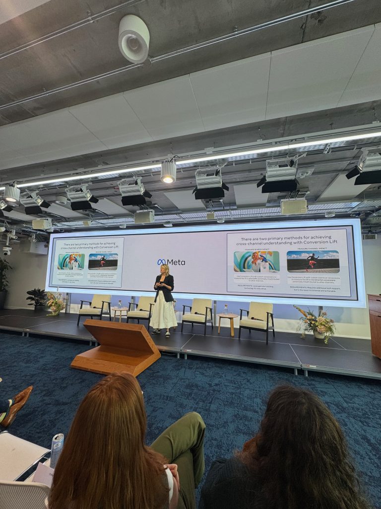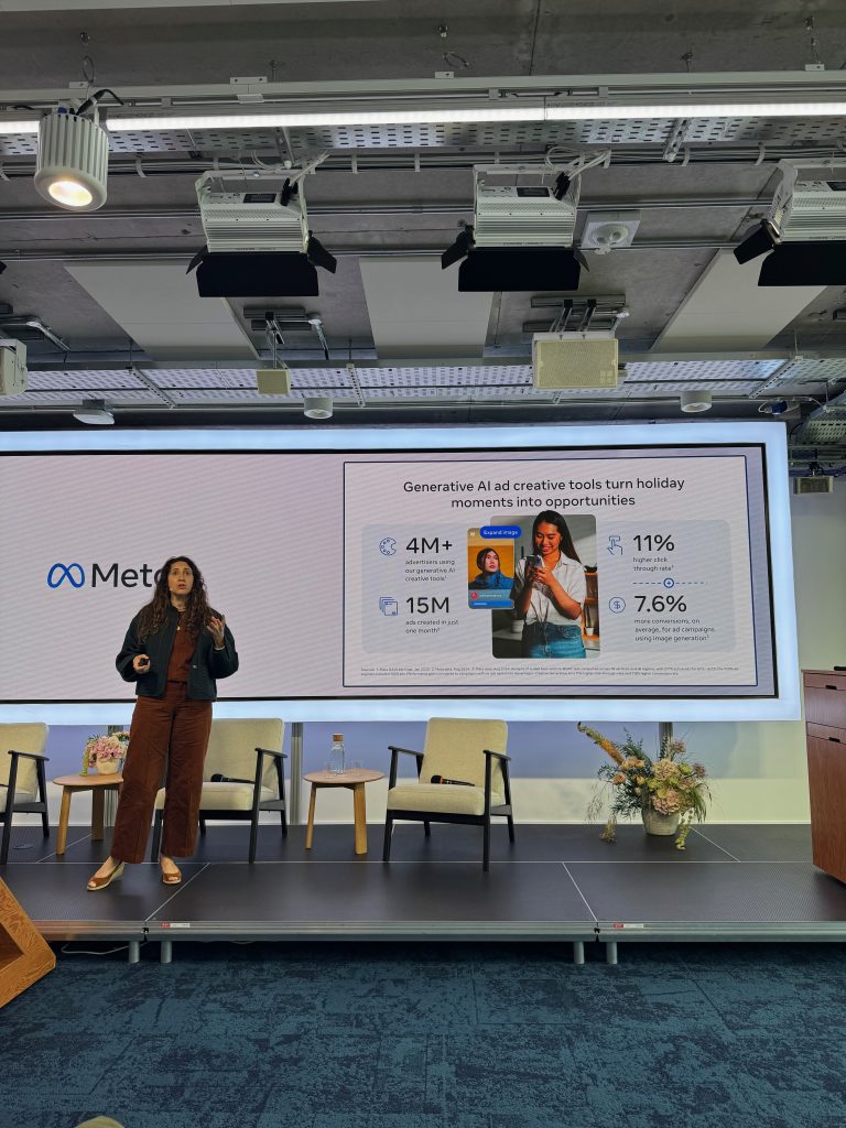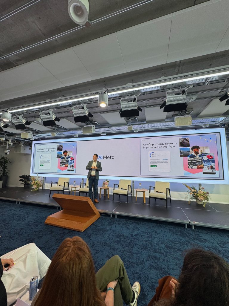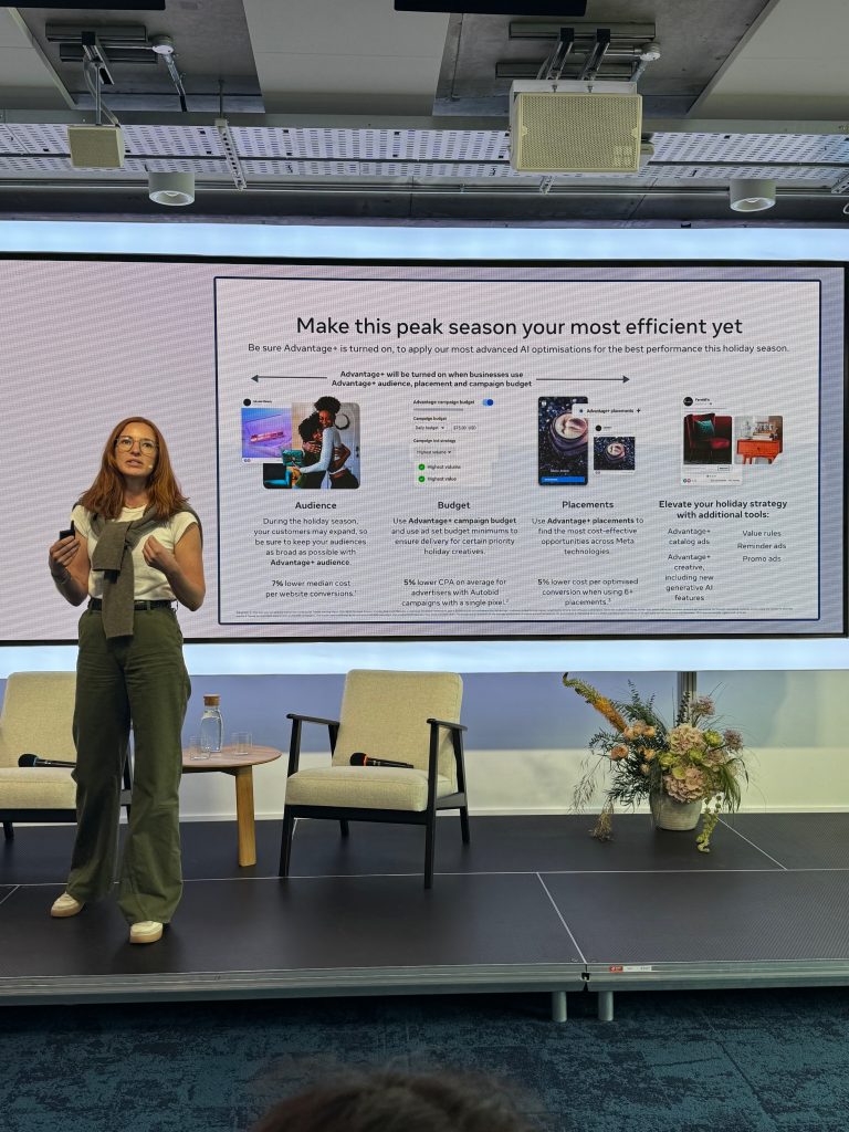 Katie Lowell, Product Marketing Manager la Meta, a venit special de la San Francisco pentru a vorbi despre cele mai noi instrumente bazate pe AI și automatizare care ajută advertiserii să obțină mai mult în sezonul de vârf. Focalizarea a fost pe eficiență, recomandări personalizate și cum să folosești corect noile tool-uri deja disponibile în platformă.