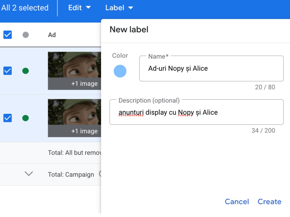 Atunci când ai în cont un număr mare de anunțuri, grupuri sau campanii, devine dificil să le urmărești pe toate și să le optimizezi. Pentru a avea un control foarte bun asupra acestora, îți recomand să utilizezi etichete (Labels).
