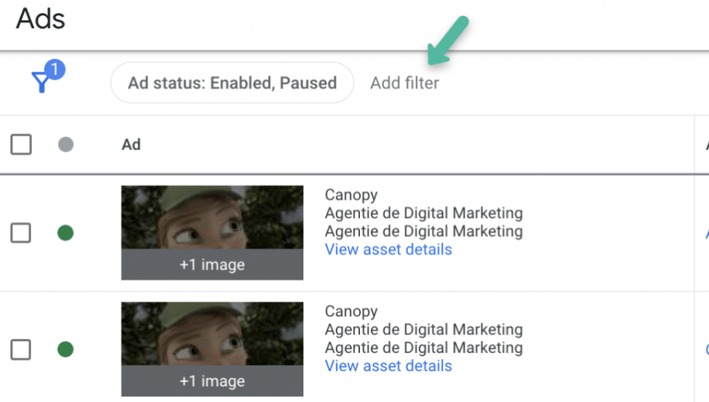 Același lucru îl putem face și pentru anunțuri de tip text, ad group-uri întregi, chiar și campanii.