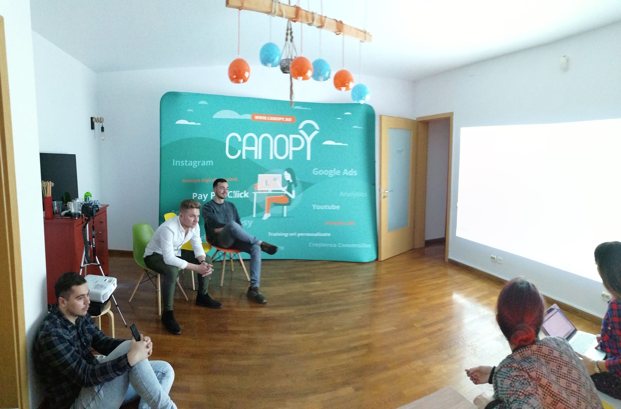 Apăsăm butonul de rewind al filmului și ne întoarcem la Eugen Predescu, CEO-ul Canopy, care în timp ce în birou încă se puneau la punct cu stres și emoție ultimele detalii, paradoxal, el se afla în fericita postură de invitat la cursul de Publicitate Online al ASE, povestind relaxat despre nebunia din culisele Black Friday, pentru ca mai apoi să întoarcă la birou însoțit de trei studenți curioși care să simtă pe propria lor piele cum decurge un astfel de eveniment.