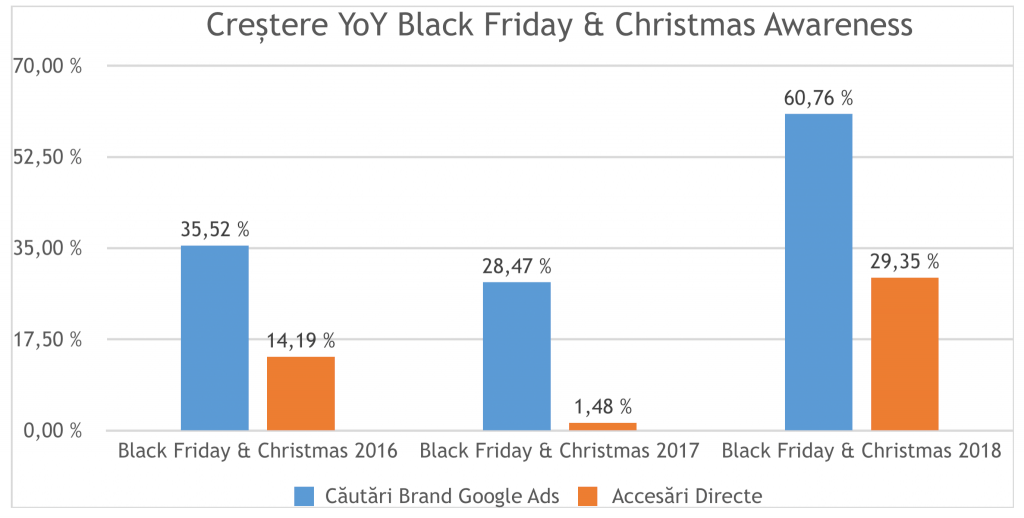 Având în vedere că aceste evenimente pot fi influențate de mai mulți factori: promoțiile, decizia de cumpărare mai rapidă în preajma celor două evenimente, presiunea timpului scurt de promoție, putem lua în considerare și impactul lor în creșterea overall a conversiilor. Cu toate acestea, impactul campaniilor de video și display, considerate de awareness în general, demonstrează puterea lor în creșterea conversiilor brandului.