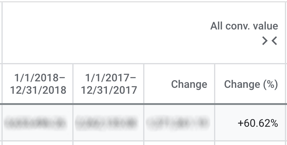 Cea mai recentă analiză efectuată asupra impactului adus de rezultatele în online, este raportul indicatorilor de performanță 2018 versus 2017 înregistrând o creștere de 60% a valorii conversiilor.
