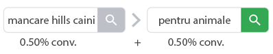 Ultimul click de pe care s-a înregistrat conversia a fost pe keyword-ul “pentru animale” însă totul a început de la termenul “mancare hills caini” – ceea ce este perfect normal și correct să atribuim credit ambelor cuvinte cheie.